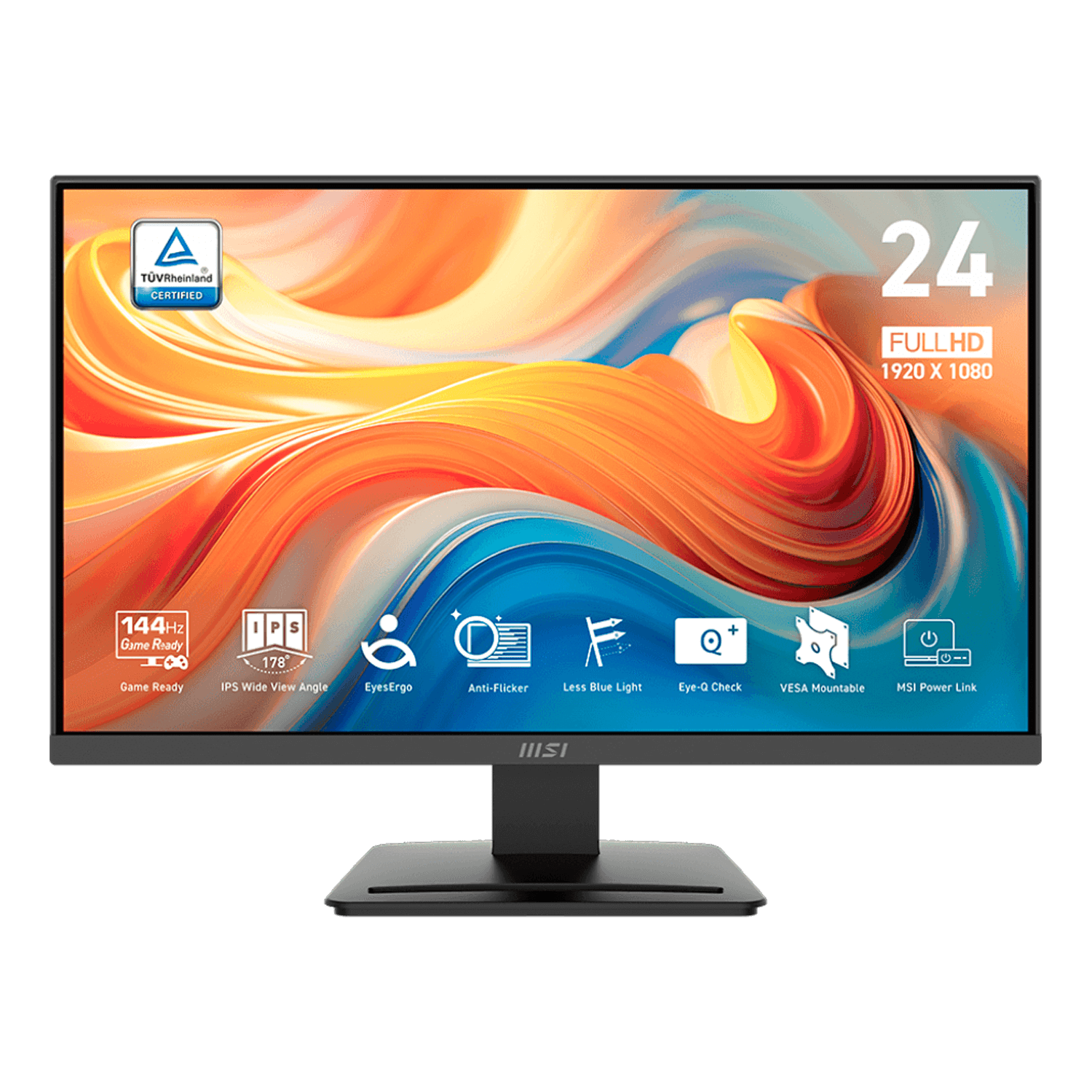 - MSI EyesErgo technology with Anti-Flicker technology helps prevent eye strain and fatigue.